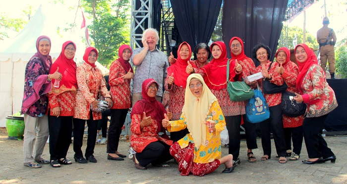 Now she runs an angklung group of retirees making music from shaking bamboo tubes and giving public performances. When not on stage she designs batik to illustrate the rich history of central East Java. In between she does all she can to keep her generation from slumping into misery.
