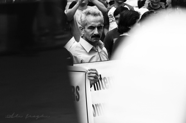 The peaceful demonstrations started. I made sure both lenses were ready – open. I put the wide-angle lens on the camera, and the 75-300mm lens in the bag. I was ready. I started shooting with a single point focus in colour mode for 10 minutes or so. But I didn’t get what I had imagined.