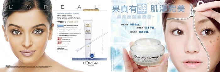 For instance, Choi Ji Woo, a South Korean actress/celebrity, advertised the France-based ‘DiorSnow Pure White’; Sammi Cheng, a Hong Kong actress/singer, modeled for Japanese SK-II’s ‘Whitening Source Skin Brightener’; Michele Reis, a Hong Kong supermodel, advertised L’Oréal Paris’s ‘White Perfect’ and ‘White Perfect Eye’; Ploy Chermarn, Thai actress, modeled for L’Oréal Paris’s ‘White Perfect Eye’; and Gong Li, a Chinese movie star, posed for L’Oréal Paris’s ‘Revitalift White’. This marked the beginning of the construction of cosmopolitan whiteness.