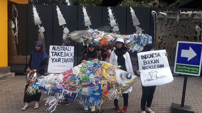 ‘Indonesia has commitments to reduce the amount of plastic waste leaking into the sea. Most of the unusable plastic waste from Australia and other countries are thrown into the river,’ Safri explained.