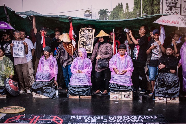 Throughout the documentary there is footage of intimidation of protesters by the police, army, thugs, and village government officials, ranging from veiled accusations of communism to the real threats of kidnapping and physical violence. The documentary ends with drone footage of a procession of women, men and children carrying an Indonesian flag and a ‘Reject the cement factories in Java’ sign through the rice fields, suggesting that despite these challenges the female-led movement is there to stay.