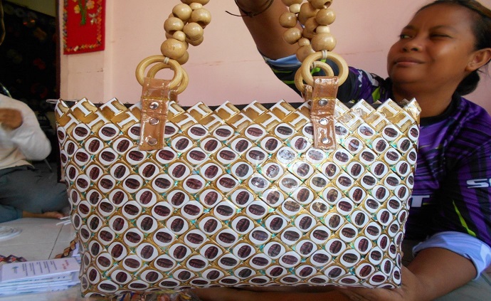 On the Lombok mainland, the privately operated waste management company Bintang Sejahtera has introduced an island-wide waste management system to reduce pollution. The organisation believes waste threatens the environment, marine life and tourism and so they have introduced the concept of ‘bank sampah’ (‘waste bank’) a way of turning waste into cash. ‘We have full-time staff and volunteers across Lombok, and local people are paid for washing, cleaning and processing waste into objects for sale’ says the manager of the Mataram office of Bank Sampah Bintang Sejahtera (BSBS), where handicrafts are made and sold. The organisation promotes the reduction, reuse and recycling of waste, and shares information with schools, communities, businesses and government institutions. Handicrafts made from waste are sold and the profits used to promote awareness of waste pollution. Other waste can be sold to commercial recycling operations on Bali and Java. ‘We have 27 big collection bins across Lombok for rubbish,’ the manager says.