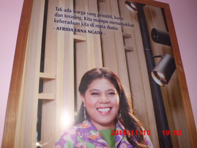 Afrida Erna Ngato's portrait, hung at home. "There is no such thing as ancient, primitive or alienated citizens. We can show the world that we exist." (Safrudin Amin) |